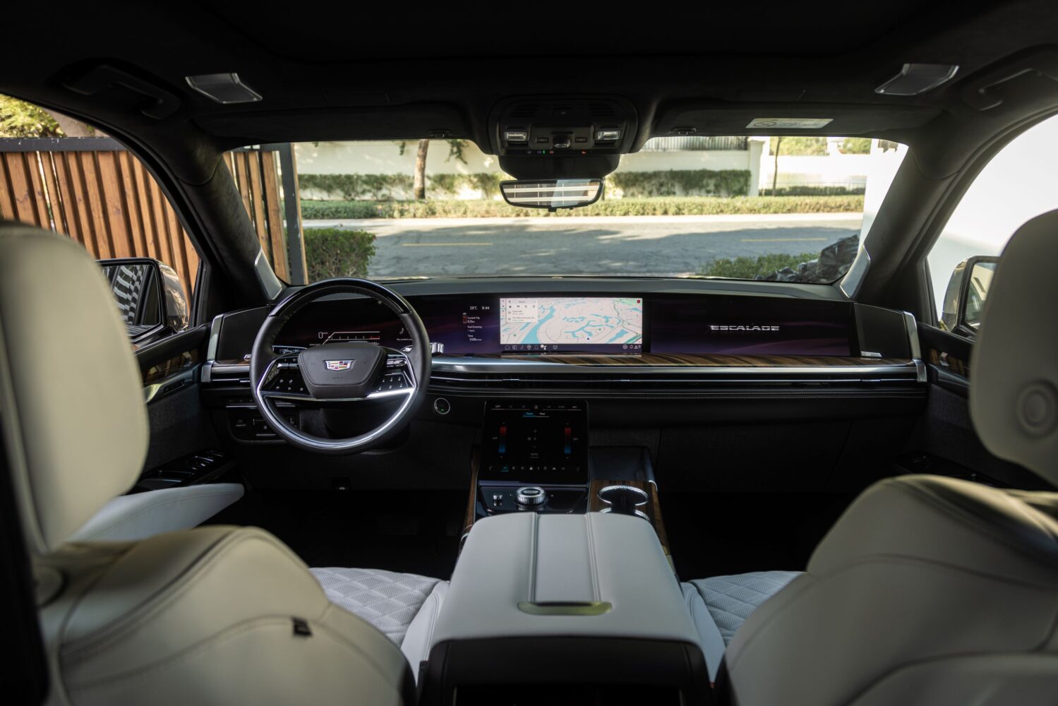 The 2025 Escalade is packed with technology features designed to enhance the driving and passenger experience. A curved, pillar-to-pillar 55-inch display dominates the dashboard, providing access to a range of infotainment options, including voice control, navigation, an app store, Apple CarPlay, and Android Auto.