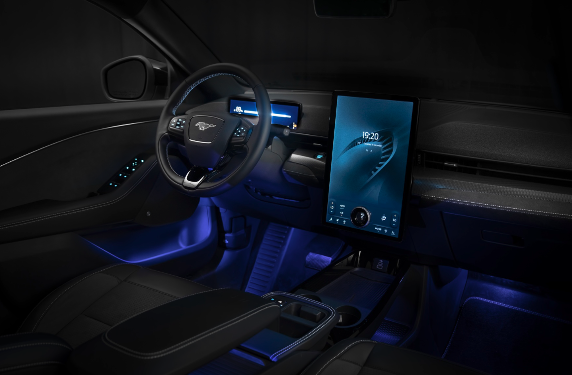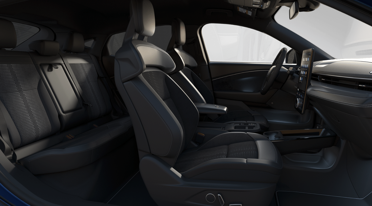 Inside, the cabin reflects a minimalist, screen-focused layout. A 15.5-inch vertical touchscreen running SYNC 4A serves as the primary interface for navigation, media, and vehicle settings, complemented by wireless Apple CarPlay and Android Auto. One-pedal driving functionality allows drivers to control acceleration and deceleration using a single pedal, while also maximizing regenerative braking efficiency.