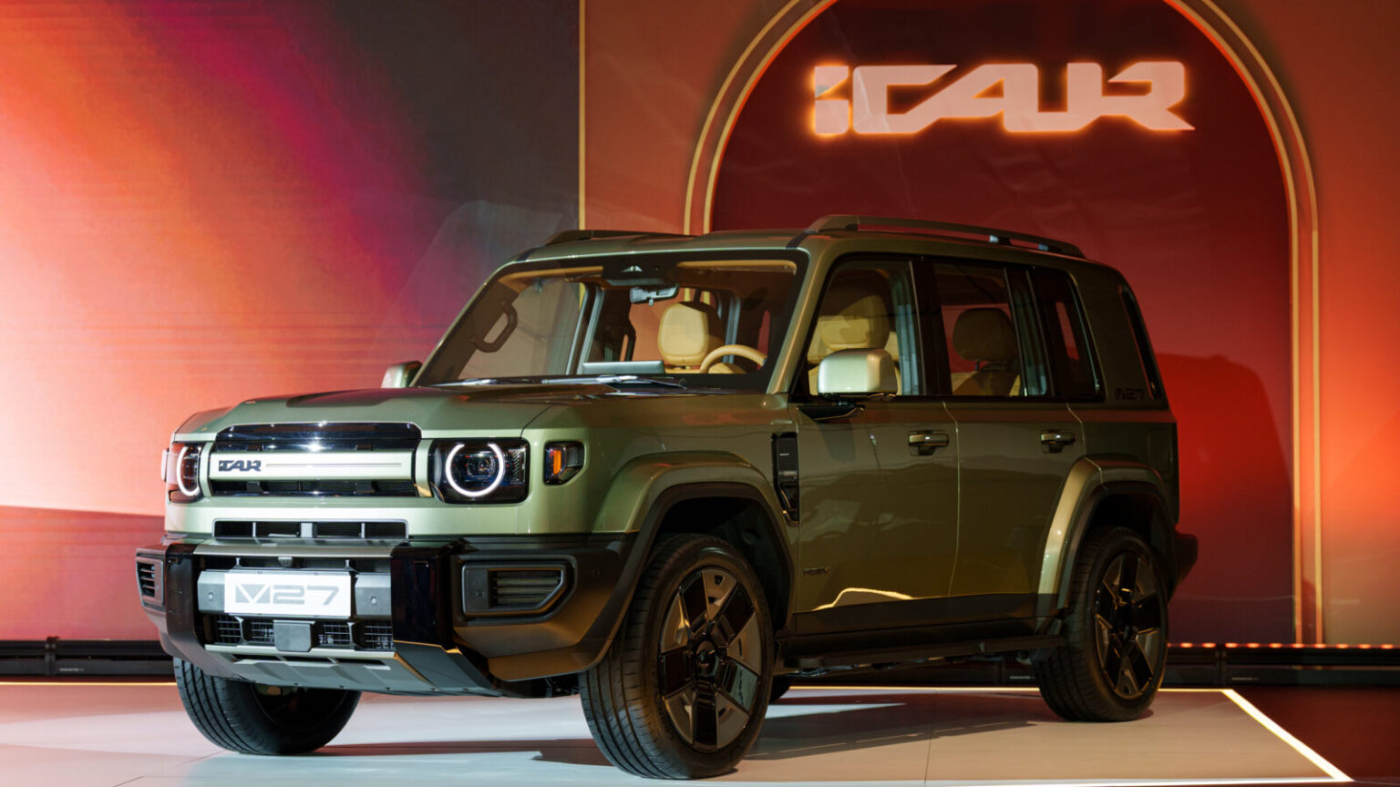 Measuring over five metres in length with a 2,900 mm wheelbase, the V27 adopts a boxy SUV silhouette with round headlamps and upright proportions. The design references classic off-road forms while incorporating contemporary lighting and surface detailing. Inside, the cabin emphasises space and visibility, with a five-seat configuration and a dual panoramic sunroof system that the company says blocks 99.9 percent of UV rays. The interior layout, branded as the “Stellar Cockpit,” focuses on a clean dashboard design and technology integration rather than heavy physical switchgear.