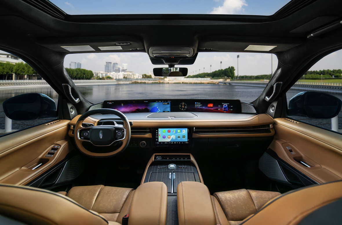 Inside, Lincoln’s most dramatic transformation takes place. The cabin centers around a 48-inch panoramic display stretching across the dashboard, complemented by an 11.1-inch center touchscreen. This setup integrates the Lincoln Digital Experience, powered by Google apps and services such as Maps, Play Store, and YouTube, alongside a 28-speaker Revel Ultima 3D sound system. Drivers can also use Google Voice Assistant for hands-free navigation, media, and in-car controls.