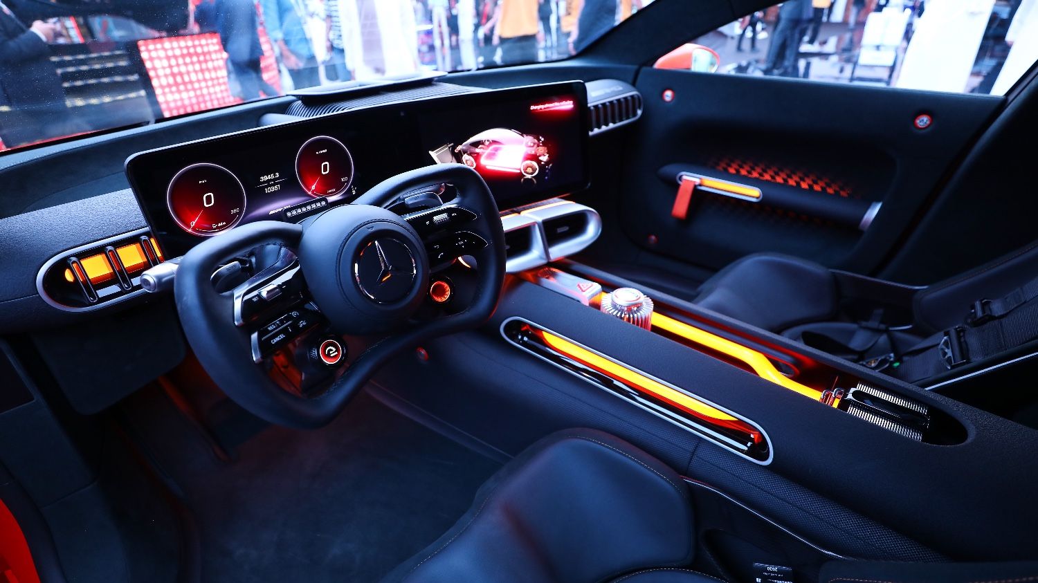 Design-wise, the concept merges experimental materials and new interface ideas. The interior features augmented reality integrations such as a racing helmet display and adaptive 3D seat pads. Mercedes-Benz’s in-house MB.OS operating system powers the vehicle’s digital environment. The exterior introduces illuminated paint segments, headlight-mounted speakers, and the MBUX Fluid Light Panel—elements aimed at exploring the fusion of aesthetics, interactivity, and aerodynamics.