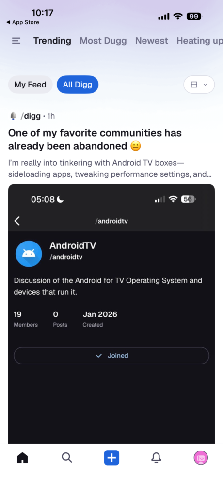 Structurally, Digg and Reddit share DNA. Topic-based communities, links, discussions, media—it’s all familiar, almost comforting. But Digg resists the modern instinct to overbuild. The interface is clean, mobile-first, and openly unfinished in a way that feels honest instead of sloppy. While I was using it, things changed week to week. Little irritations vanished. Navigation improved. Posting got smoother. Not because a roadmap demanded it, but because someone noticed and cared. Reddit’s updates often feel like they escaped a shareholder call. Digg’s feel like patch notes written at 1 a.m. by someone who just got annoyed enough to fix the thing.