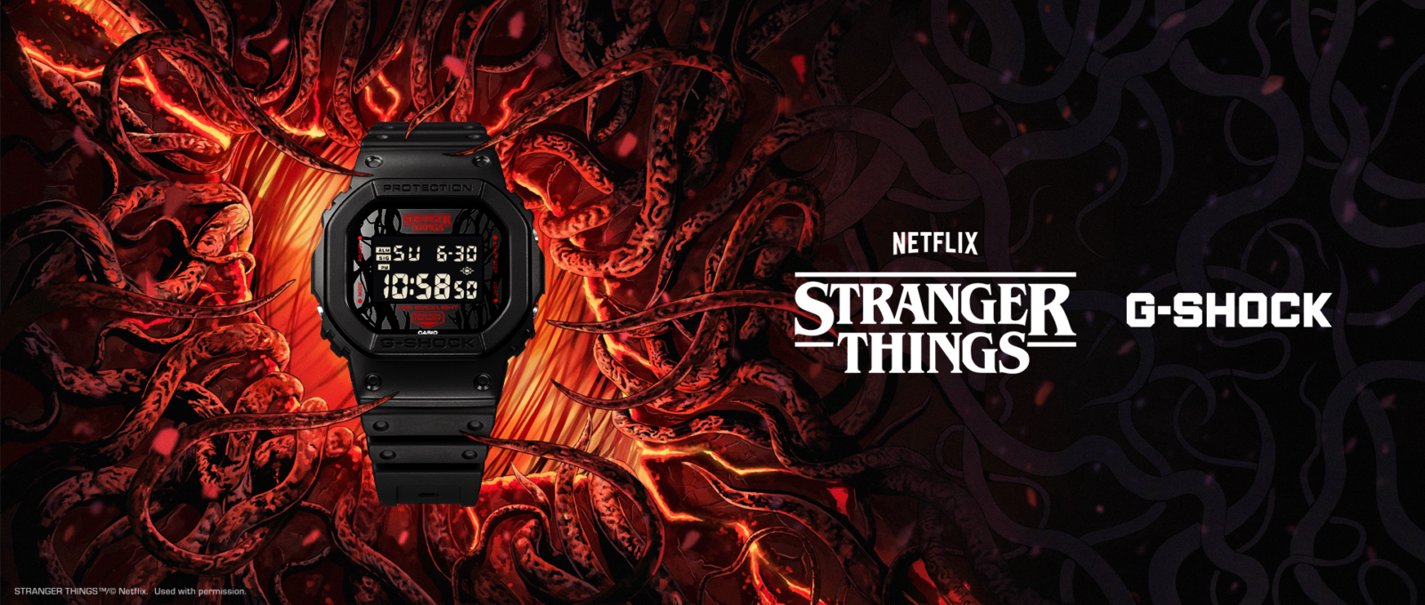 The new collection consists of two models, the DW-5600STT-1 and the AQ-800EST-1A, each drawing from the visual language of Stranger Things rather than directly recreating props from the show. The designs reference the series’ recurring theme of parallel worlds, particularly the Upside Down, using subtle graphic elements and color choices instead of overt branding across the watch faces.