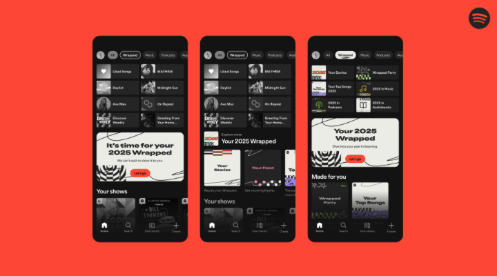 Spotify is also framing Wrapped as a social experience through Wrapped Party, an interactive feature that lets groups of friends revisit their year in music together. This sits alongside the Wrapped feed, which consolidates personalized stories, Best Of playlists, and creator messages in one interface.
