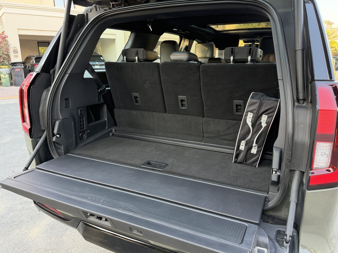 The Expedition’s cavernous interior transforms effortlessly depending on your needs. With all three rows upright, you get the space you’d expect from a full-size SUV—plenty for groceries, luggage, sports equipment, or camera gear. Fold the third row, and the loading bay becomes impressively deep. Fold the second row as well, and the Tremor turns into a moving studio apartment. Long furniture pieces, full camping setups, bicycles, or bulky gear all fit without effort.