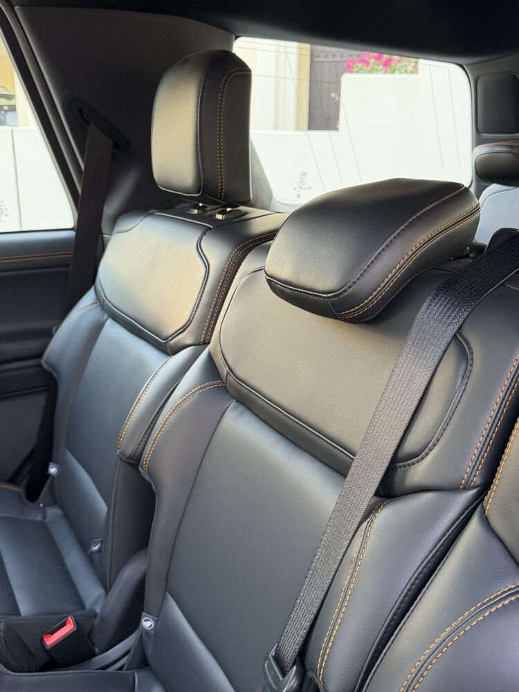 The seats, trimmed in Ford’s X-Active material, might be the most underrated part of the Tremor’s interior. They’re built for durability under punishing temperatures, but they don’t sacrifice comfort to achieve that. The support is exceptional—shoulders, lower back, thighs—they all get proper attention. Gold stitching and embroidered Tremor logos add personality, reflecting the subtle visual identity that separates this trim from the rest. The driver’s seat remembers your ideal configuration, including steering wheel and pedal placement, making each morning commute feel like the SUV has quietly prepared itself for you.