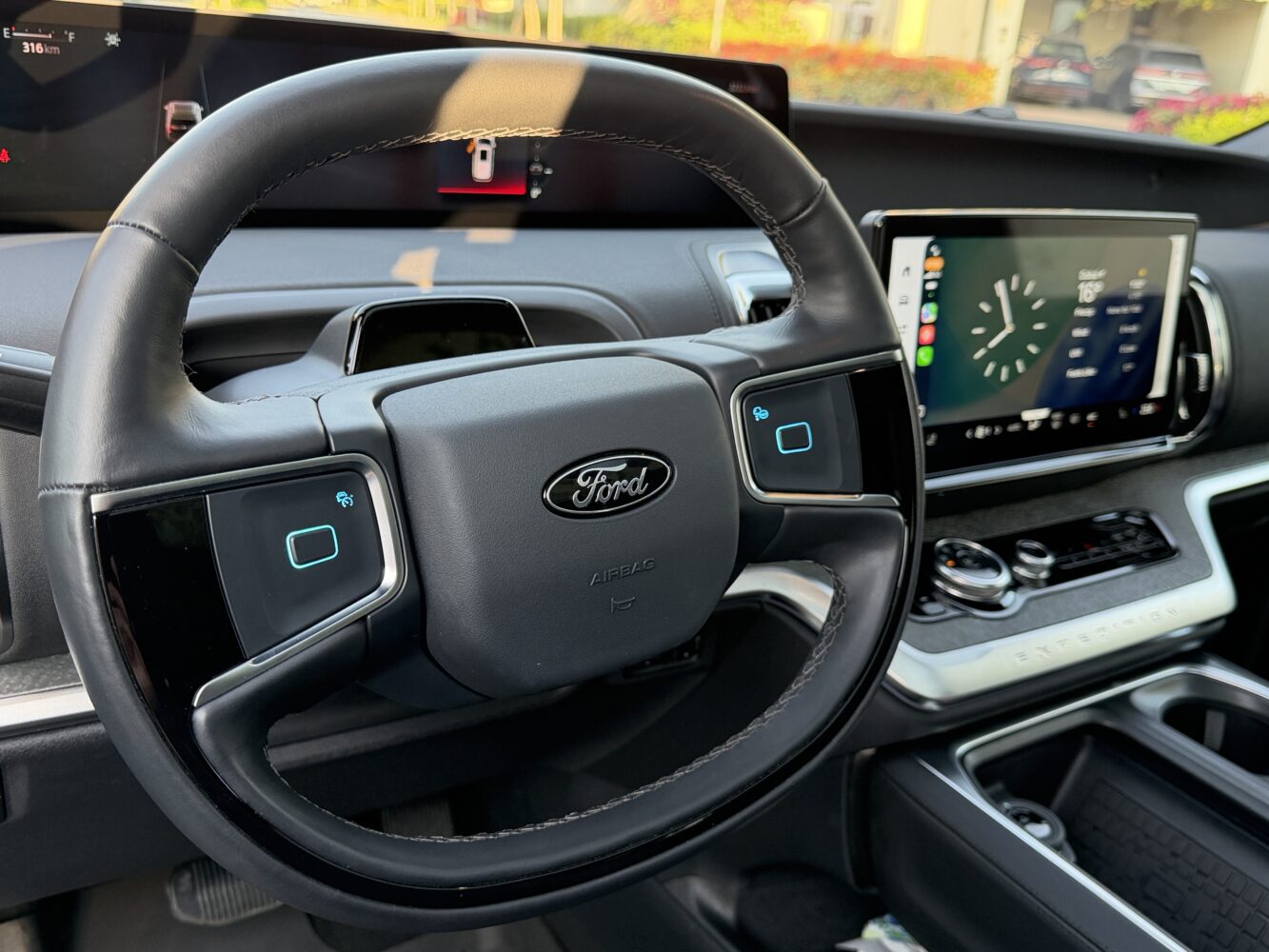 Alongside it, the 13.2-inch center screen drapes the center dash in a soft digital glow. The interface feels modern in a way that suggests Ford learned not from car companies but from software designers. Animations glide rather than snap. Menus feel intuitive even before you consciously register them. You scroll, tap, swipe, and the vehicle responds instantly with the confidence of a device that knows it was built on fast silicon.