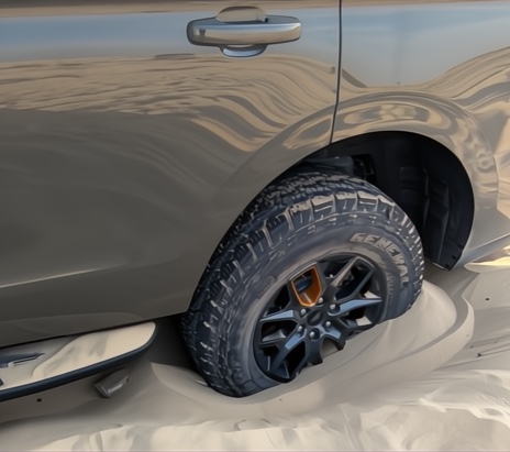So: Al Qudra, late afternoon, the kind of soft, powdery sand that happily eats crossovers for breakfast. I picked a small bowl with a gentle incline, turned traction control back on (because modern systems are tuned around the car’s brain, not our ego), and drove into it deliberately wrong—too slow, slight uphill, wheels turned, then lifted off just enough to kill momentum. The Tremor sank in with that familiar feeling all desert drivers recognize: the nose dips, the rear settles, and forward motion turns into theatrical wheelspin.