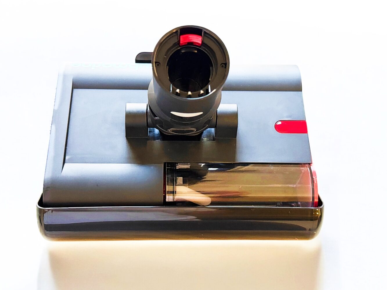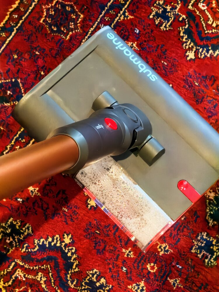 At first glance, the Submarine attachment looks like something pulled straight from a sci-fi movie: sleek, low-profile, with a transparent water tank that glows faintly when filled. It clips on with the same effortless click as the other Dyson heads, instantly transforming the V16 from a dry vacuuming beast into a full-fledged wet cleaner. No complicated hoses, no fiddly setup — just fill, click, and clean.