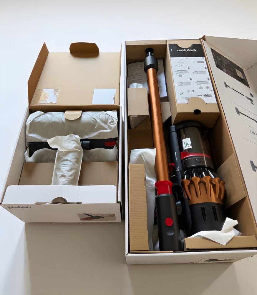 The whole thing weighed just over 6kg, which was surprisingly easy to handle. I lugged it into my living room, cleared a spot, and started unpacking like a kid at Christmas. Inside, there was no wasted space — every part was perfectly slotted into its cardboard cradle. Dyson’s engineers have clearly thought about the unboxing ritual as part of the experience. It feels premium before you even touch the vacuum.
