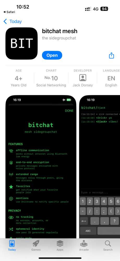 Bitchat is pure Jack Dorsey energy: niche, clever, a bit rough, and absolutely unnecessary until the exact moment it becomes priceless. It’s not trying to be WhatsApp, Signal, or your grandma’s “Good Morning” sticker spam app. It’s here for the day the lights go out, the internet dies, and you need to find your friends without being tracked.