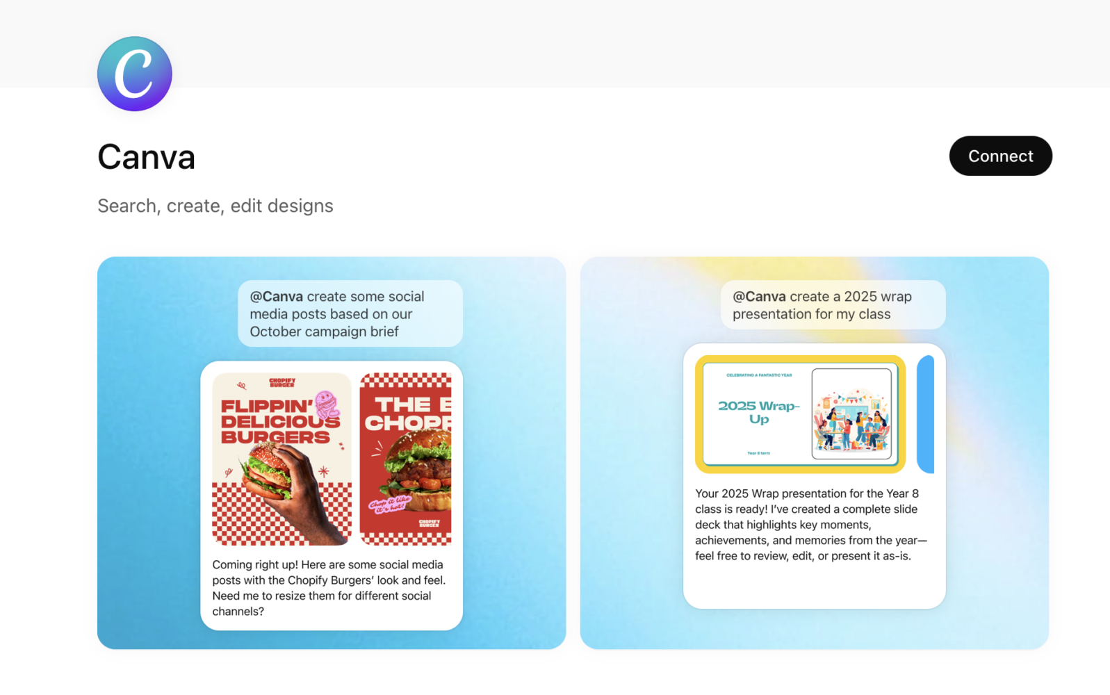 Canva in ChatGPT collapses all of that into a single action. You describe what you want, and ChatGPT generates an actual Canva design — fully structured, visually consistent, and ready to edit.
