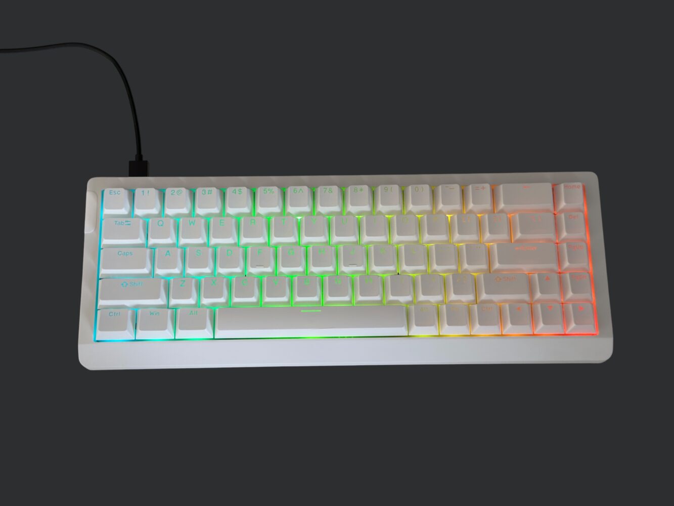 The legends are clean and readable. The south-facing A-RGB per-key lighting diffuses evenly. There’s a bit of light bleed on lighter colorways, but the legends glow clearly without weird inconsistencies.