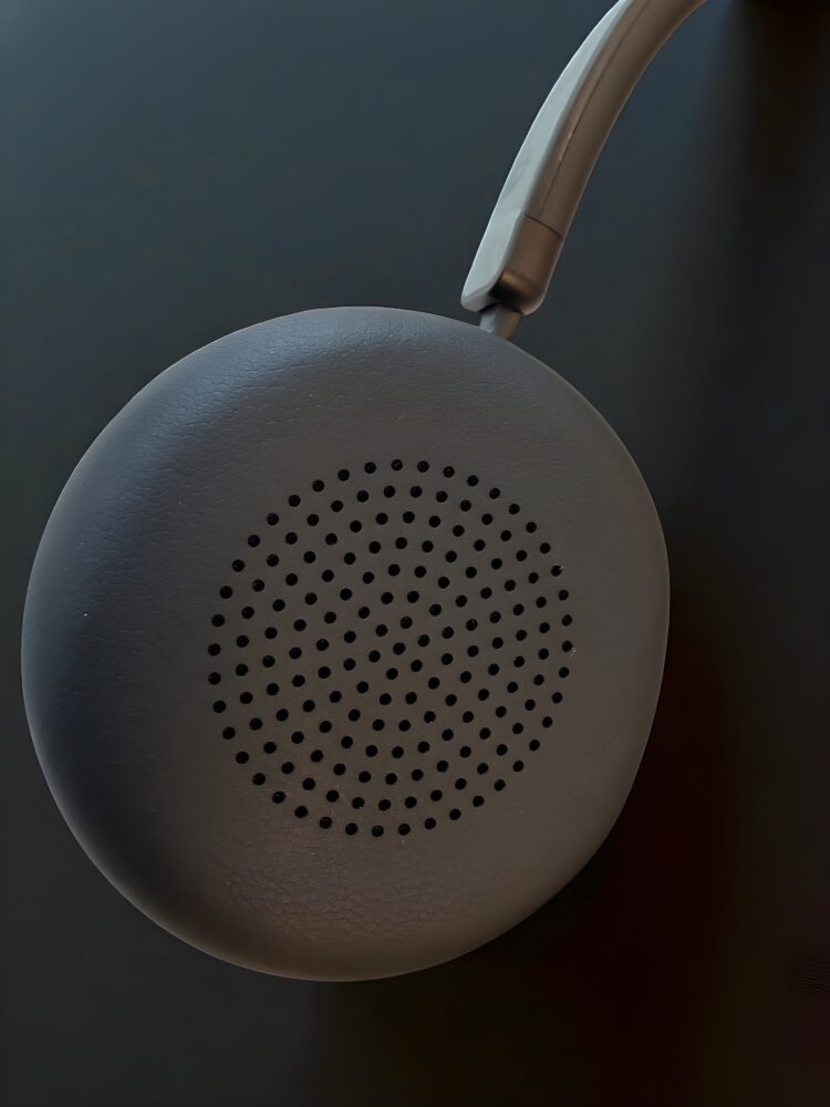 Every control is positioned with usability in mind. The Teams button is easy to reach without searching, the hook button is distinct enough to avoid confusion, and the volume controls are raised so you can find them instantly by touch. The power switch also doubles as the pairing trigger, keeping the design streamlined. The mic boom flips up to mute—a small action that becomes second nature and is far quicker than hunting for a mute toggle in software. A discreet LED indicator on the left earcup communicates call, mute, battery, and connection status, reducing the chance of those embarrassing “You’re still muted” moments.