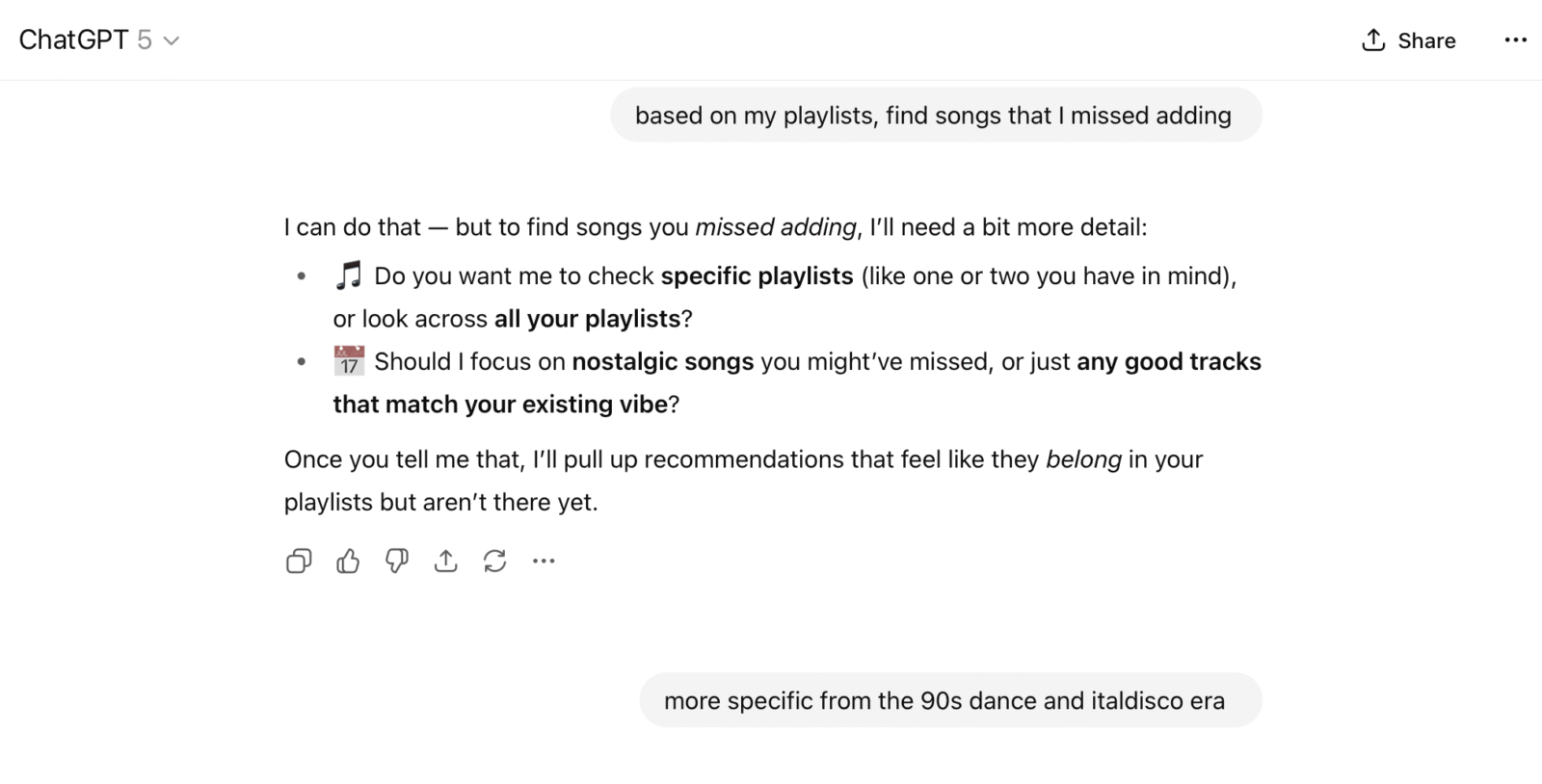 The real magic started when I asked ChatGPT to find songs I’d probably love but somehow never added. I was expecting the usual suspects, maybe a remix or two I’d overlooked. Instead, it handed me a playlist that felt like opening a time capsule I’d buried and forgotten about.