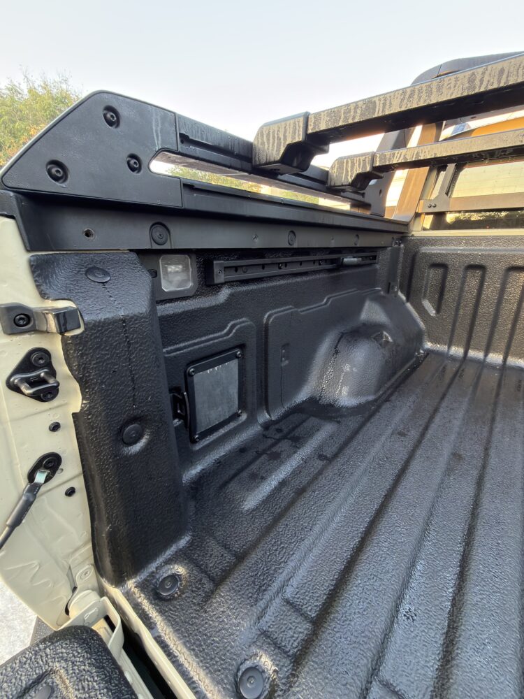 You’ve got a roof rack, a bed liner, side storage solutions, corner steps for easier tub access, and enough subtle rugged detailing to remind you this isn’t a soft crossover pretending to be something tougher. But it’s not overstyled either. It doesn’t scream “extreme adventure” with fake vents and cartoonish cladding. It feels grown up.