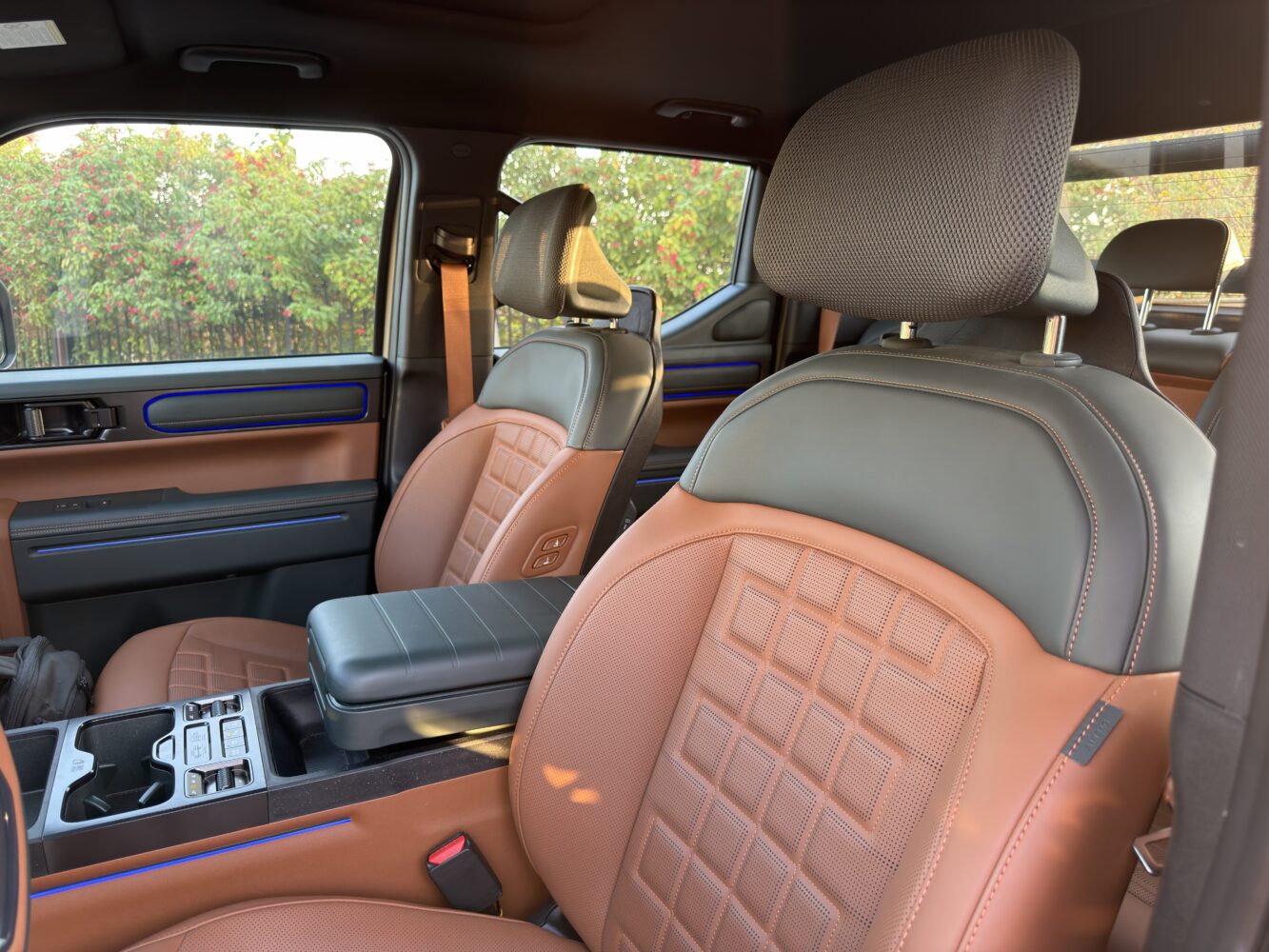 On regular city roads, it absorbs imperfections with a composure that genuinely surprised me. Speed bumps don’t trigger a dramatic rear-end hop. Expansion joints don’t send a shudder through the cabin like you’ve just driven over a loose manhole cover. The high-performance dampers front and rear are clearly doing more than just existing for marketing copy. They give the truck a controlled, settled feel that makes daily driving far less tiring than you’d expect from something this size.