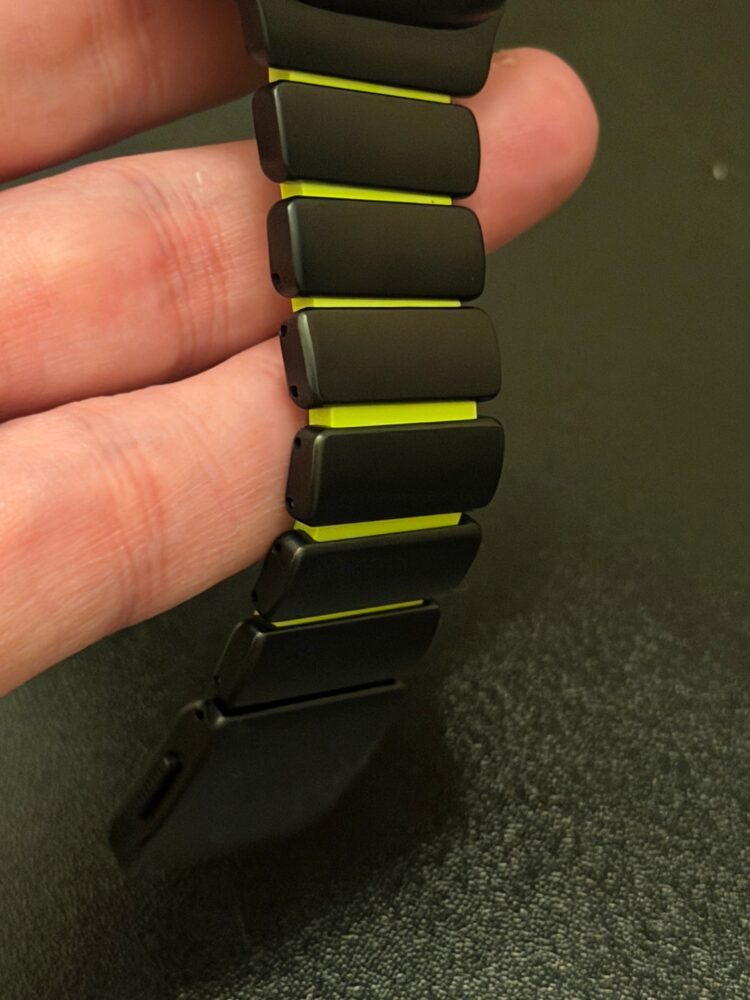Here’s where Nomad’s designers deserve credit. They didn’t just take a metal link bracelet and slap in some rubber bits for fun. The Stratos Band is a true hybrid in every sense. The titanium gives it the visual authority of a luxury timepiece, while the FKM fluoroelastomer links between each segment give it literal flexibility. It bends, it breathes, it moves with you.