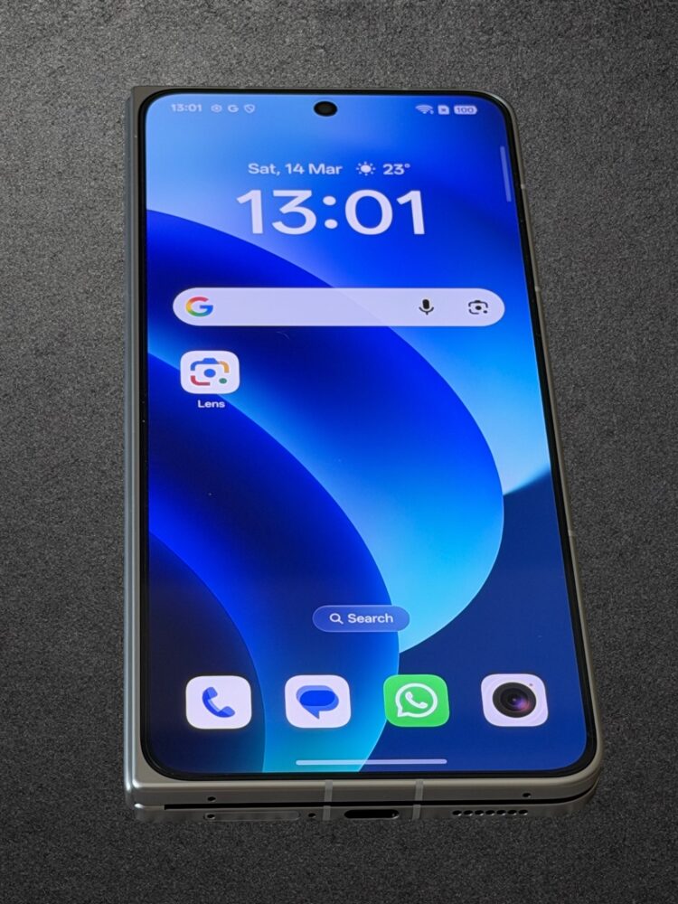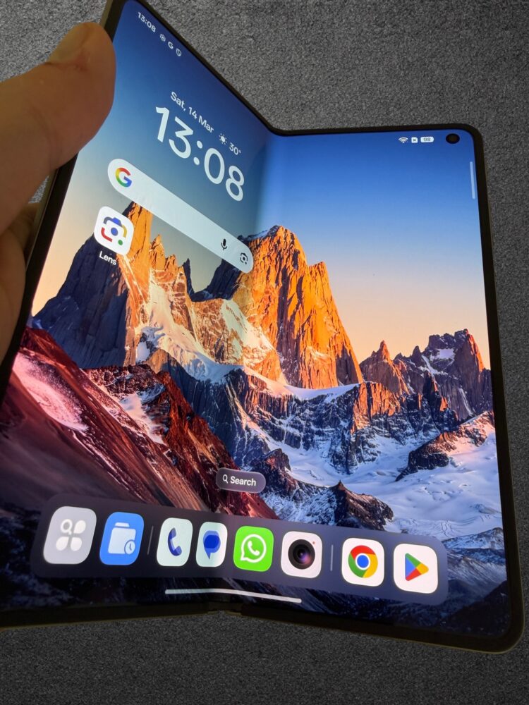 I unfolded the phone and handed it to friends, asking them to slide their fingers across the display and try to locate the crease. The reaction was almost always the same: confusion. Most people expected to feel a clear dip in the center of the screen, but instead found a surface that felt surprisingly flat.