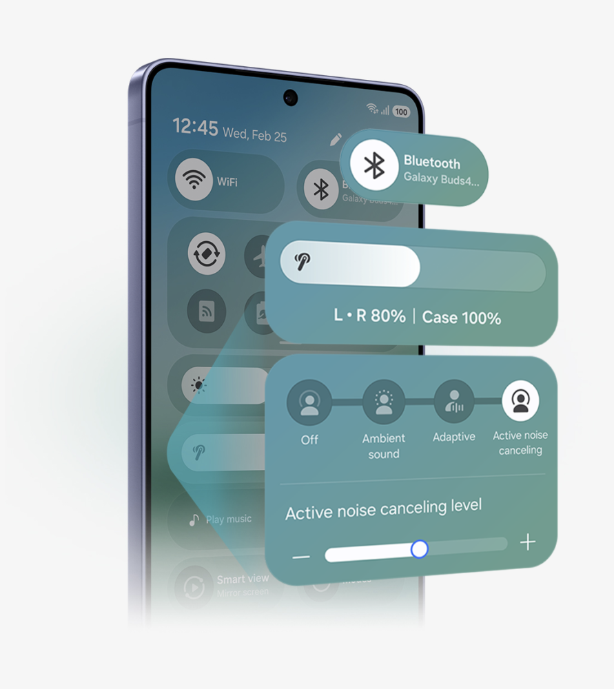 When paired with a Galaxy phone running One UI 8.5, the earbuds integrate deeply with the system interface. You can control noise cancellation, adjust audio settings, and manage features directly from the Quick Panel without needing separate apps.