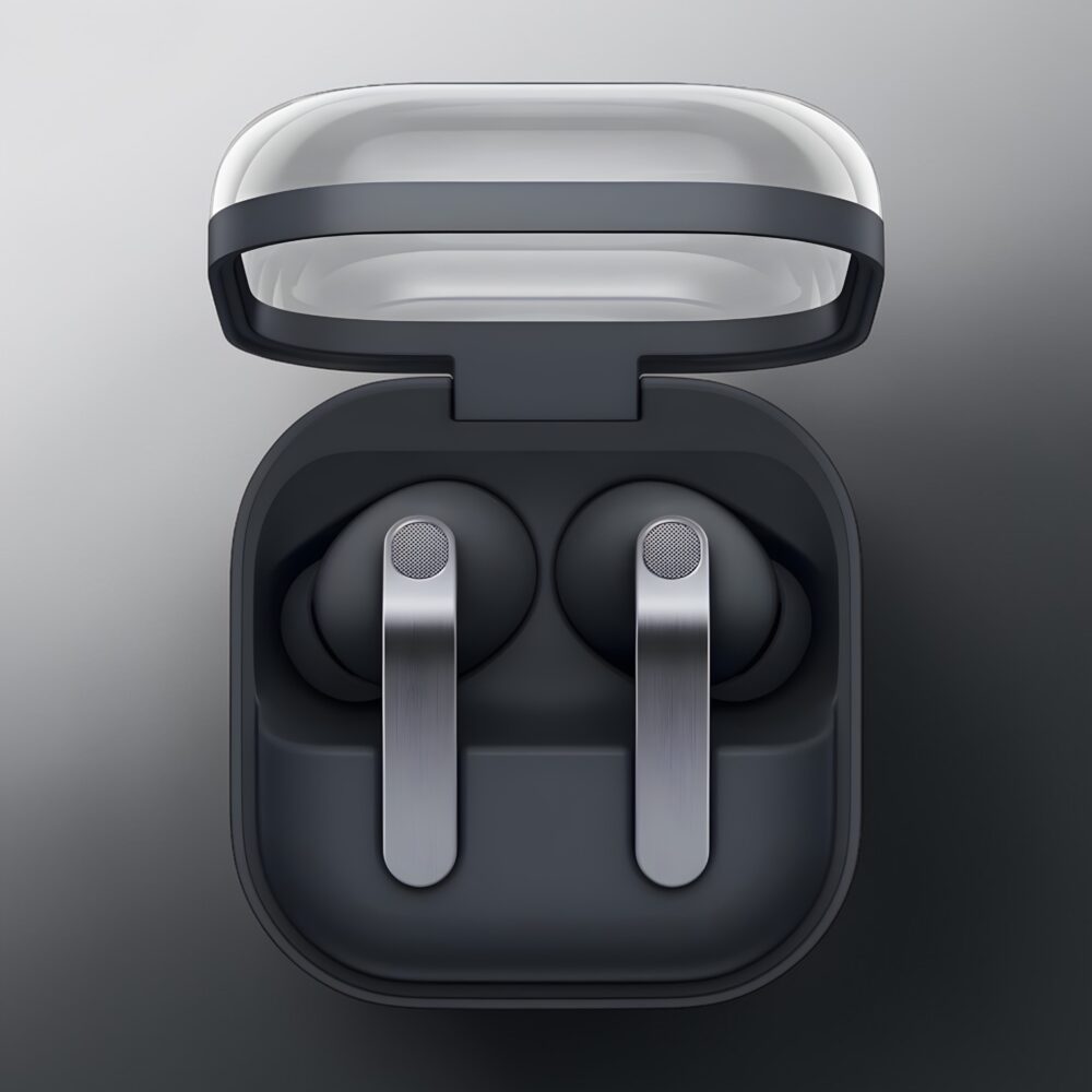 The defining visual element is the metal blade running down the stem of each earbud. Instead of simple plastic, Samsung uses sculpted aluminum with a subtle hairline finish that reflects light just enough to look elegant without feeling flashy. It gives the earbuds a premium feel that stands out immediately when compared with many other wireless earbuds in the same category.