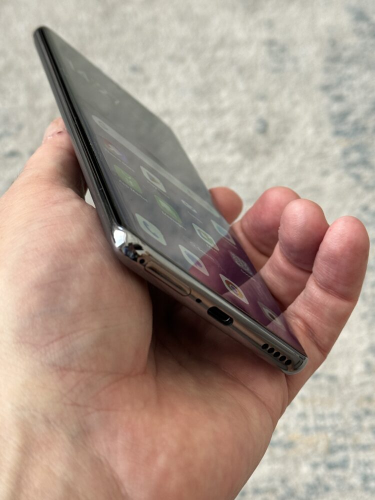 On the bottom, you’ll find the sim tray, USB-C charging port and a speaker grill, The volume rocker and power button sit in the right side of the phone, with nothing on its left.