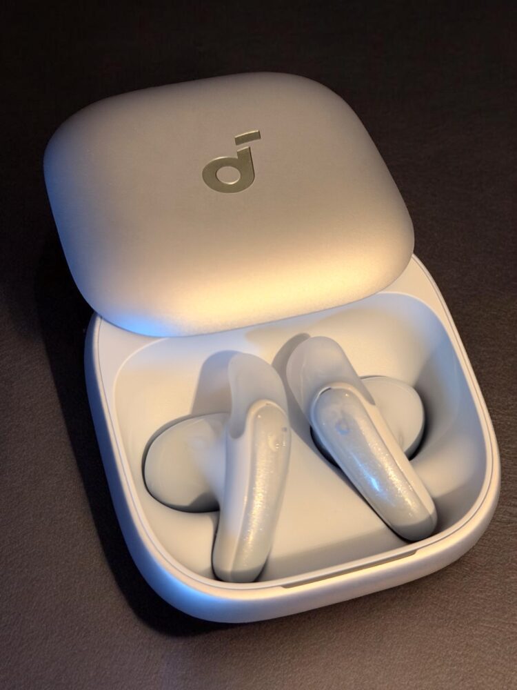 Battery life lands right where you want it to. About six hours with ANC on, closer to seven without, and the charging case squeezes out several full recharges. What really impressed me was the quick top-up. Ten minutes in the case can get you hours of listening, which saved me more than once before calls. The case itself is chunkier than Apple’s or the minimalist competition, but it slides into a pocket easily and feels solid. The sliding lid with the LED battery indicator is one of those small UX touches Soundcore keeps nailing lately.