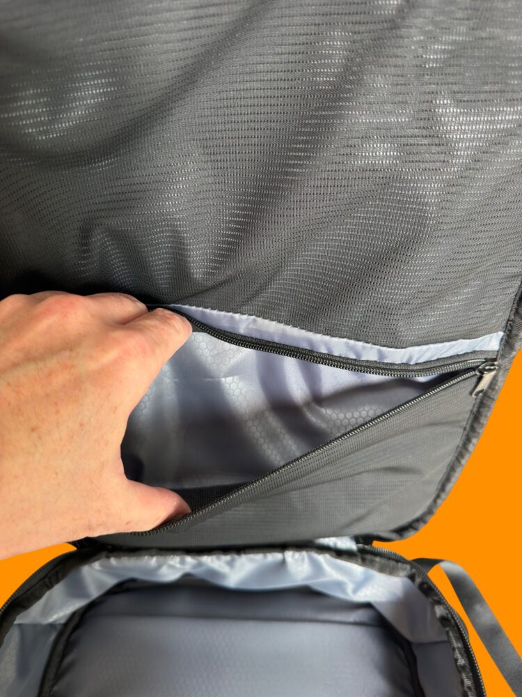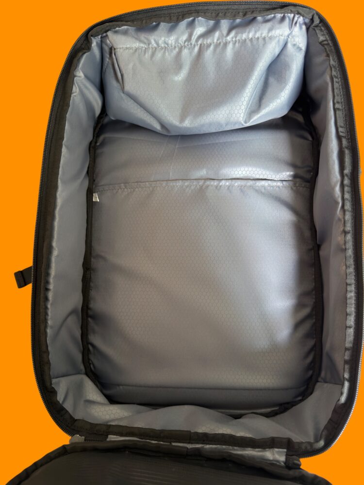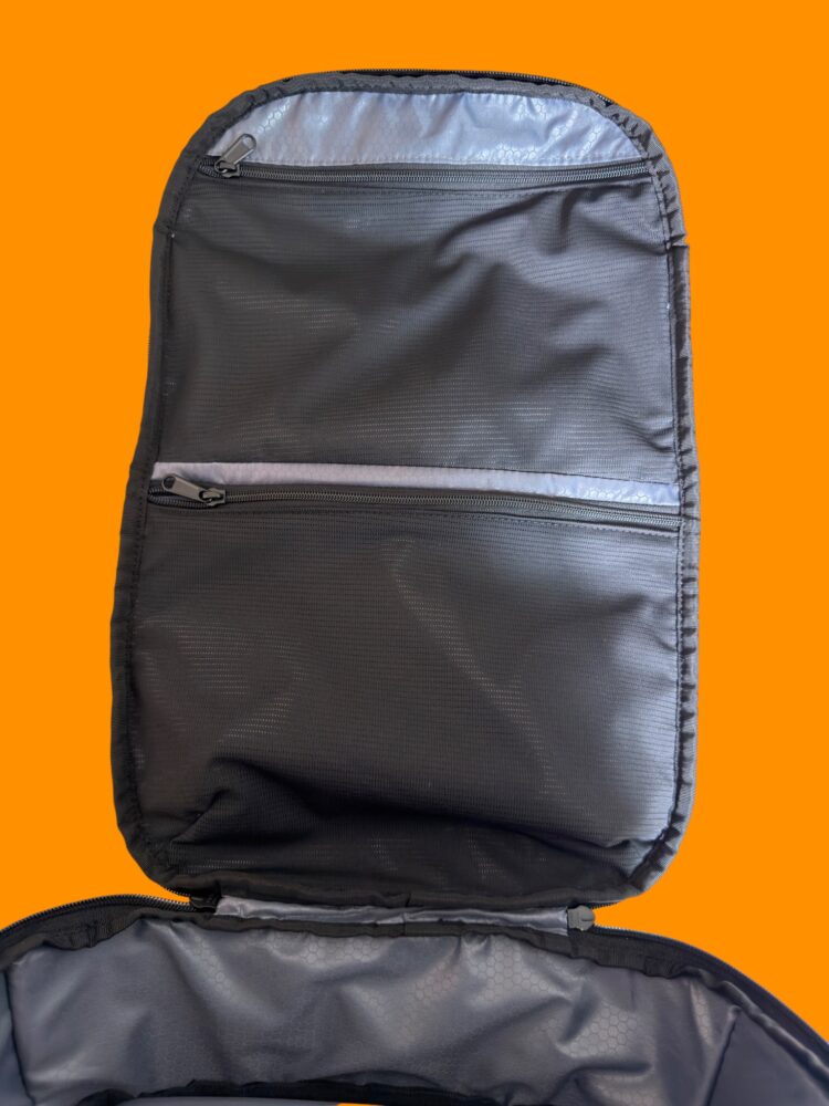 Inside, the organization leans toward professional efficiency. There’s a padded laptop compartment that fits devices up to 16 inches, along with space for a tablet, both protected and separated. Additional internal pockets keep cables, chargers, and accessories from turning into a tangled mess. Everything has a place, but nothing feels overly restrictive.