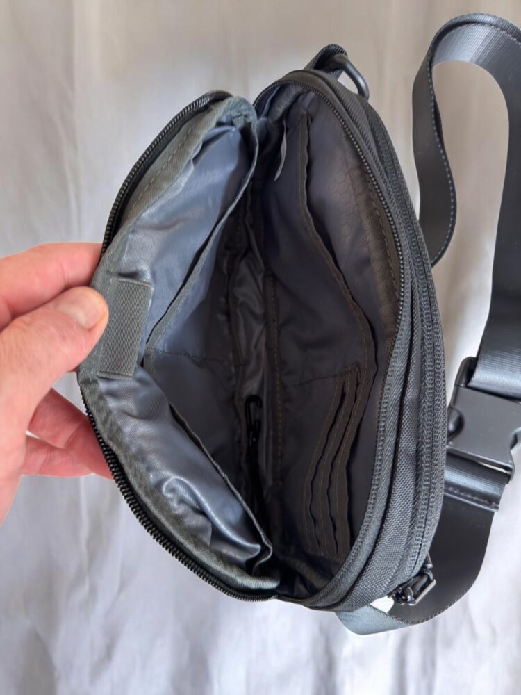 In hand, the sling feels lightweight but reassuringly solid. There’s no excess padding or unnecessary structure, yet it doesn’t feel flimsy or disposable. It’s clearly meant to be worn all day, forgotten about until you need something, and then appreciated when everything is exactly where it should be.