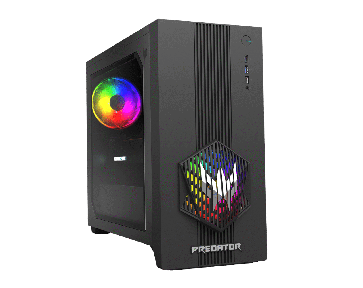 The new Predator Orion 3000 desktop rounds out the lineup with a redesigned 28-liter chassis, now housing up to an Intel Core Ultra 7 CPU and the RTX 5070 GPU. The Orion 3000 is built for mid-range gamers and content creators who want solid performance and room for expansion. Dual drive configurations (SSD + HDD), Wi-Fi 7 support, and an assortment of USB ports make it a versatile setup for home use. RGB-lit front and rear fans are more than cosmetic—they’re part of the unit’s air-cooled system optimized for quiet, sustained operation.