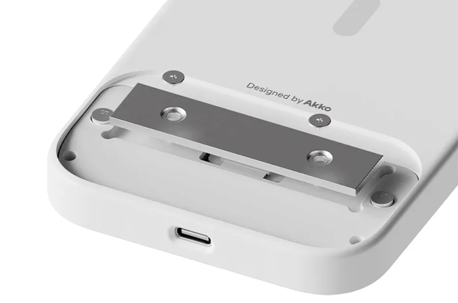 The MetaKey’s main appeal lies in restoring a physical typing experience to the iPhone. While typing on a touchscreen remains the norm, a physical keyboard offers greater precision and frees up the display by removing the on-screen keyboard. The tradeoff, however, is a noticeably longer and heavier phone once the case is attached. To counterbalance this, Akko includes a removable nine-gram weight that attaches to the back of the keyboard, providing better stability when typing. It’s a small but practical design choice that helps the case feel less top-heavy.