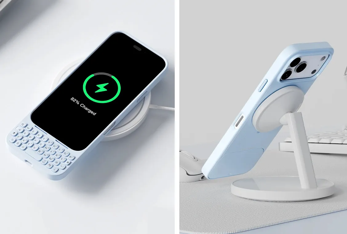 Beyond its nostalgic form factor, the MetaKey includes several features that bring it closer to a modern accessory. The backlit keyboard supports shortcuts for numbers, Siri, voice-to-text input, and app-specific functions. A dedicated browsing mode even transforms the top rows of keys into scrolling buttons, catering to social media users who prefer tactile navigation. The case also maintains MagSafe compatibility through an additional array of magnets, ensuring it securely attaches to chargers and stands.