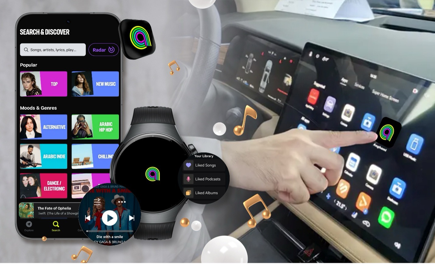 Since joining Huawei’s AppGallery, Anghami has steadily expanded its integration within the company’s ecosystem. The partnership first gained traction in 2021 with the launch of the Anghami app for HarmonyOS smartwatches, allowing users to control playback and discover music directly from their wrist. The collaboration later extended into in-car entertainment through Huawei’s HMS for Car platform, embedding Anghami’s full music experience directly into compatible dashboards. Most recently, the platform was enhanced again with a dedicated app for the Huawei Watch 5, optimized for HarmonyOS 5.