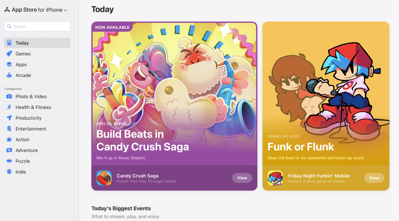 App product pages have been redesigned to present more detailed and visually dynamic content. Each listing now includes enhanced iconography for categories, awards, and events, along with improved media previews. These changes bring the web experience closer to what users see within Apple’s mobile ecosystem, aligning visuals, typography, and layout across platforms.