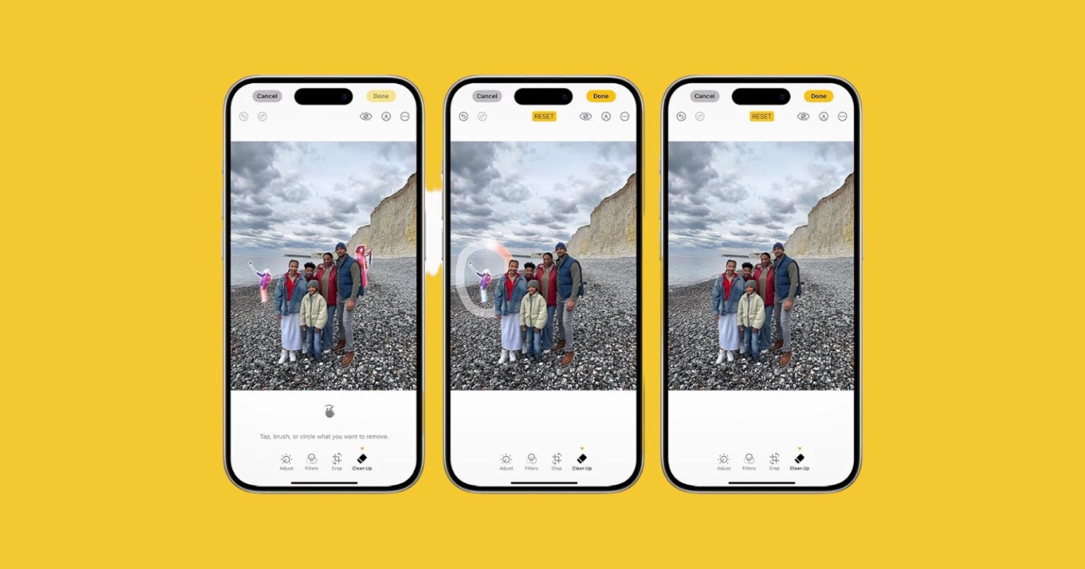 Clean Up works much like Google’s popular Magic Eraser feature, which has been available to Google Photos users for some time now. Apple’s implementation promises to intelligently detect and remove objects from images while maintaining the overall integrity of the photo. The system is sophisticated enough to understand shadows and reflections associated with the removed object, ensuring a natural and realistic fill for the resulting gap.