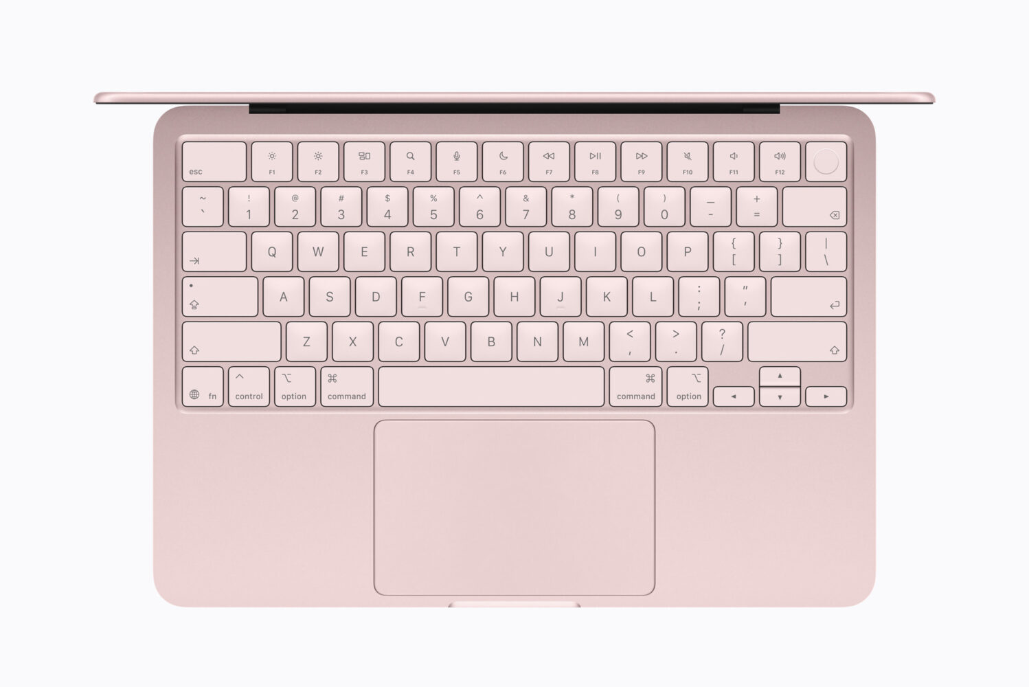 Hardware features include a 1080p camera, dual microphones with beamforming, and dual side-firing speakers that support Spatial Audio and Dolby Atmos. The Magic Keyboard and a large Multi-Touch trackpad are standard, with Touch ID integrated for secure login and purchase authorization. Connectivity includes two USB-C ports—one supporting USB 3 and external display output, the other USB 2—along with a headphone jack, Wi-Fi 6E, and Bluetooth 6.