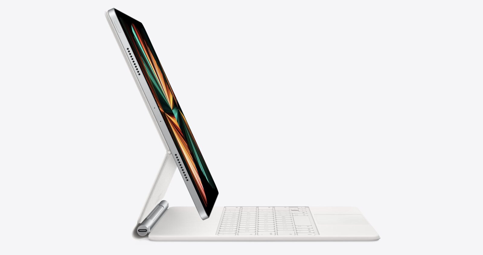 • The Magic Keyboard, which offers a comfortable typing experience with backlit keys, an integrated trackpad, and its floating design, now comes in a gorgeous new White color.