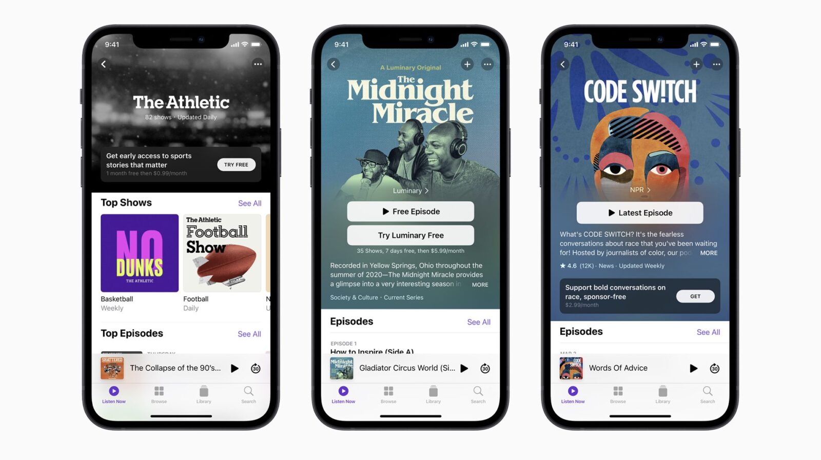 Starting in May, listeners in more than 170 countries and regions can sign up for premium subscriptions that include a variety of benefits curated by creators, such as ad-free listening, access to additional content, and early or exclusive access to new series. Listeners will be able to enjoy premium subscriptions from independent voices and premier studios, including Tenderfoot TV, Pushkin Industries, Radiotopia from PRX, and QCODE, to leading media and entertainment brands, including NPR, the Los Angeles Times, The Athletic, Sony Music Entertainment, and many more.