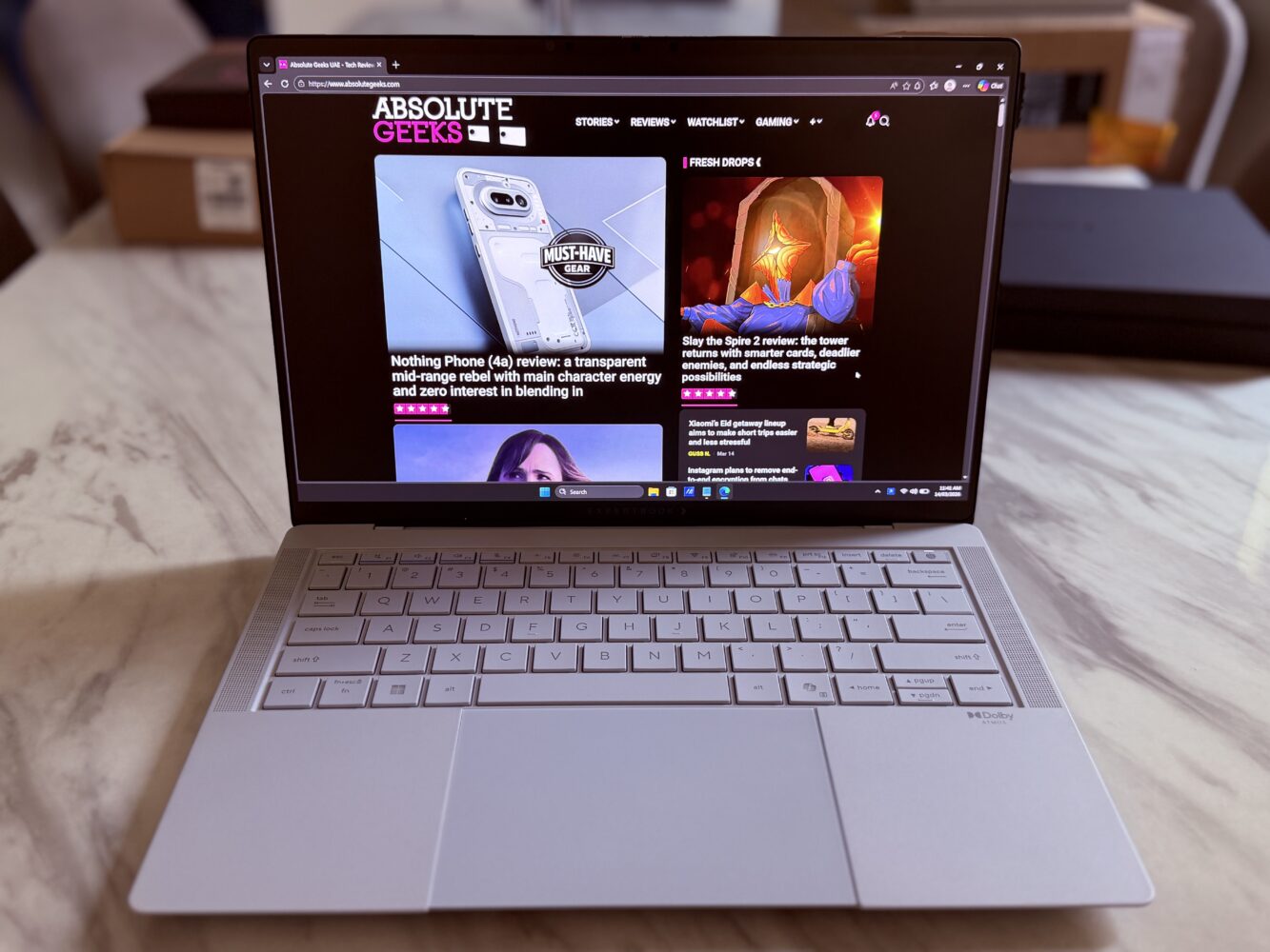 Using the display feels somewhat similar to reading a high-quality printed magazine. Colors remain vivid and saturated, but reflections are greatly reduced, making the screen far more comfortable to use in bright offices or near windows.