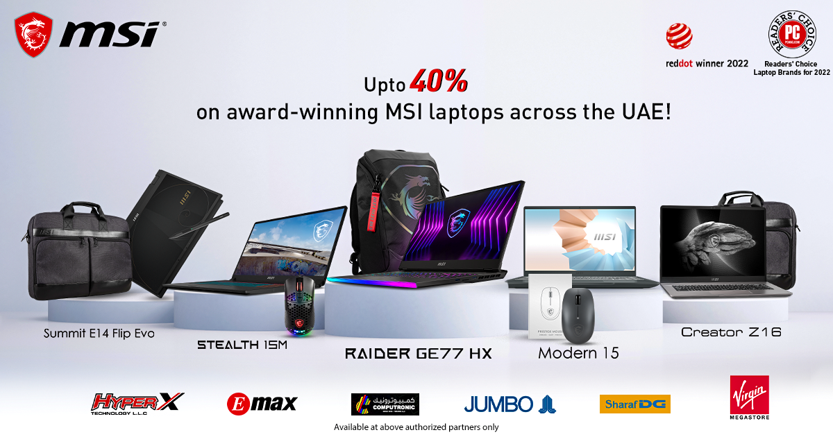 MSI’s laptops and electronic devices are only available in its authorized retail partners’ stores in UAE: Virgin Megastore, Sharaf DG, Jumbo, Computronics, Emax, and HyperX.