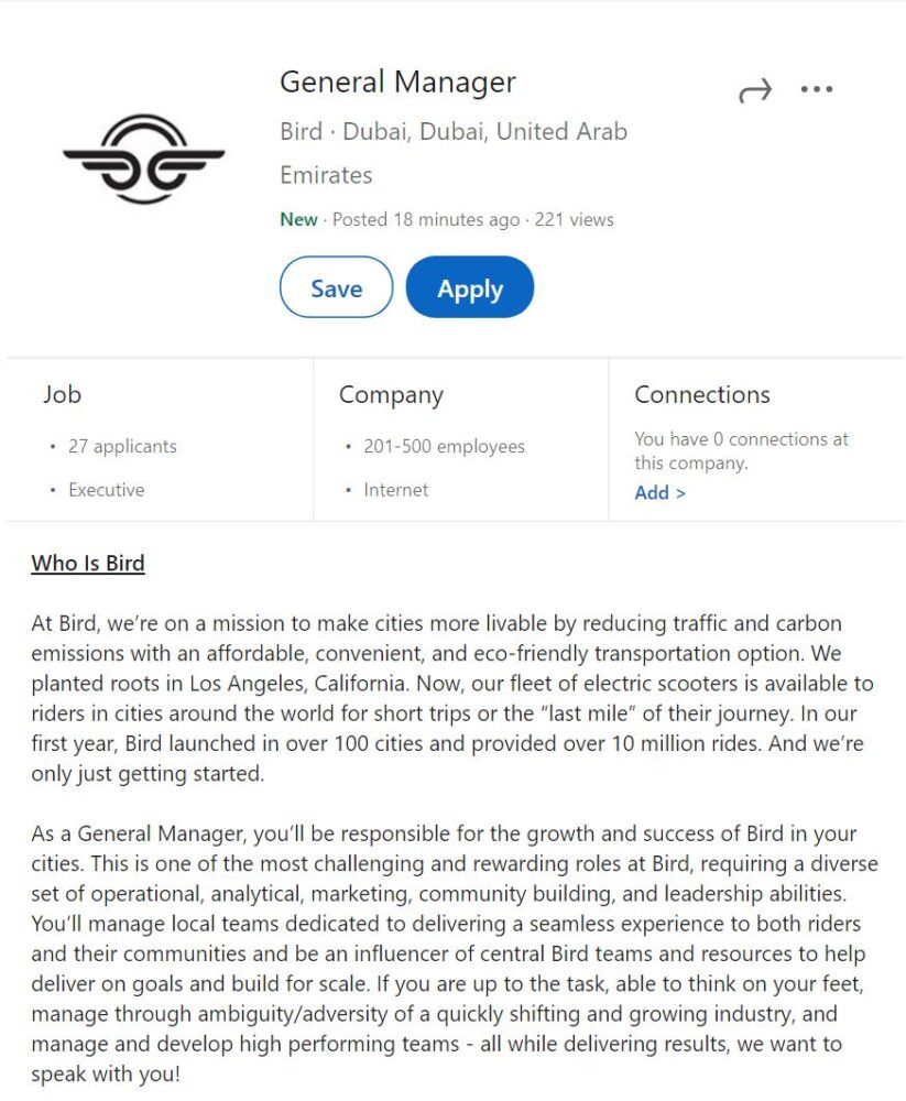 Bird, the California-headquartered leading global micromobility startup may be looking to setup operations in the region.