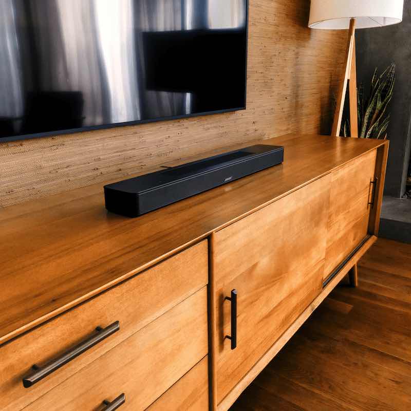 When Dolby Atmos content is available, precisely tuned Bose digital signal processing and Atmos decoding combine with the 600’s five transducers to produce sound all around you, even where there are no speakers. Working in conjunction with each other, two side-firing racetrack-shaped transducers project audio horizontally into the room, a center tweeter delivers crystal-clear dialogue, and two upfiring transducers not only help the horizontal soundscapes, but reflect sound upward off the ceiling to make it seem as though it’s coming from overhead. With the power and depth produced by these components, a high-speed chase feels like it’s coming up behind you — not at you, and a clap of thunder booms overhead and rain surrounds you.