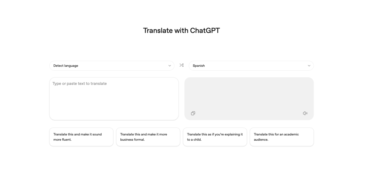 At first glance, the experience feels intentionally familiar. Users are presented with two text boxes, one for the source language and one for the translated output. Text can be typed directly, dictated via microphone on mobile browsers, or pasted in from other sources. In practical terms, ChatGPT Translate covers the fundamentals expected of a modern translation tool, but its core value proposition sits less in raw translation accuracy and more in what happens after the translation appears.