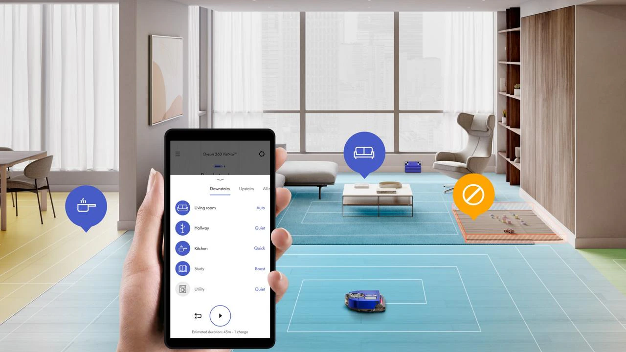 The Dyson 360 Vis NavTM robot vacuum has sensors that detect the edges of a room, and redirect suction through a side-actuator for precision edge cleaning – solving one of the biggest challenges for any robot – edge cleaning. Its high-level processor thinks and adapts, capable of pinpointing its position to within 71mm.