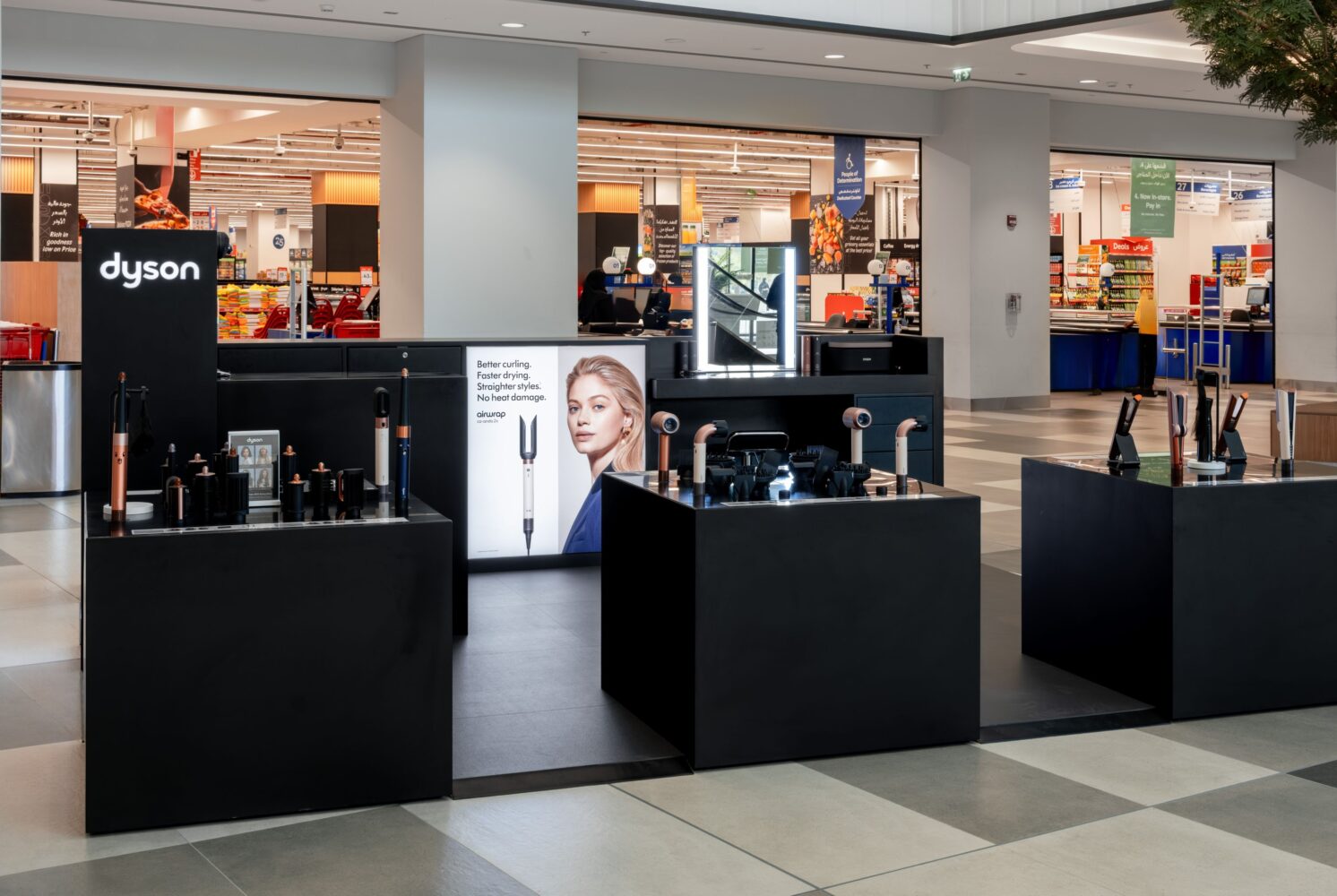 Situated on the ground floor of the mall, near Carrefour and %Arabica, the Beauty Demo Zone is designed as an open and accessible environment rather than a closed boutique. The layout encourages walk-in interaction, allowing visitors to see, test, and better understand how Dyson’s hair care tools function in real-world use. This approach mirrors a broader shift in premium electronics retail, where hands-on trials and guided demonstrations are increasingly seen as essential to consumer decision-making.