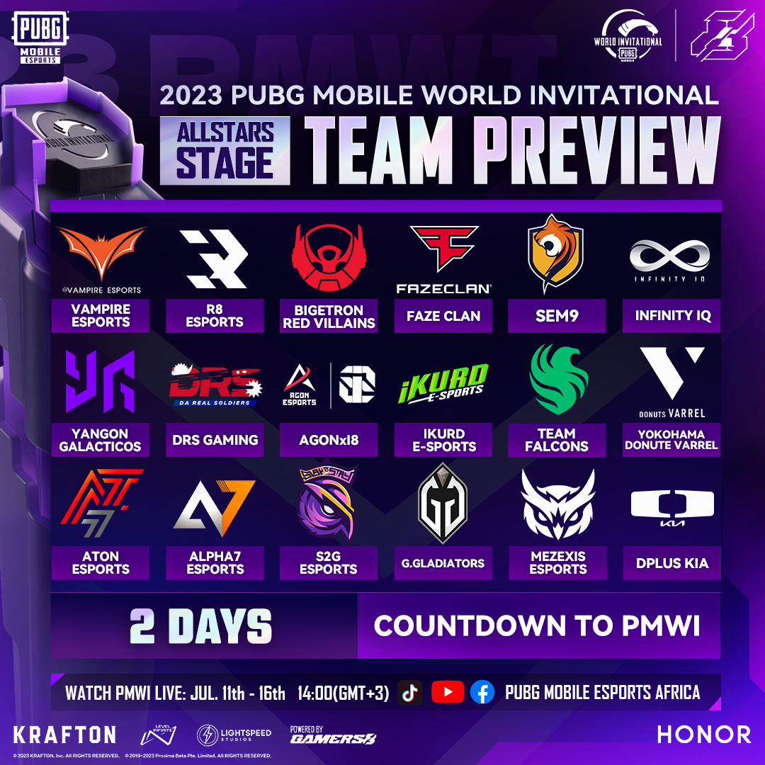PUBG MOBILE fans were able to send twelve of their favourite PMPL teams into the 2023 PMWI through the PMWI ALLSTARS Vote. These teams will compete in the brand new2023 PMWI ALLSTARS Stage from July 11th. They’ll be joined by the winners of thePUBG Mobile Showdown 2023: Korea vs Japan, PUBG Mobile Pro Series 2023 Points Korea, representatives from the host country, and the 2022 PMWI champions.