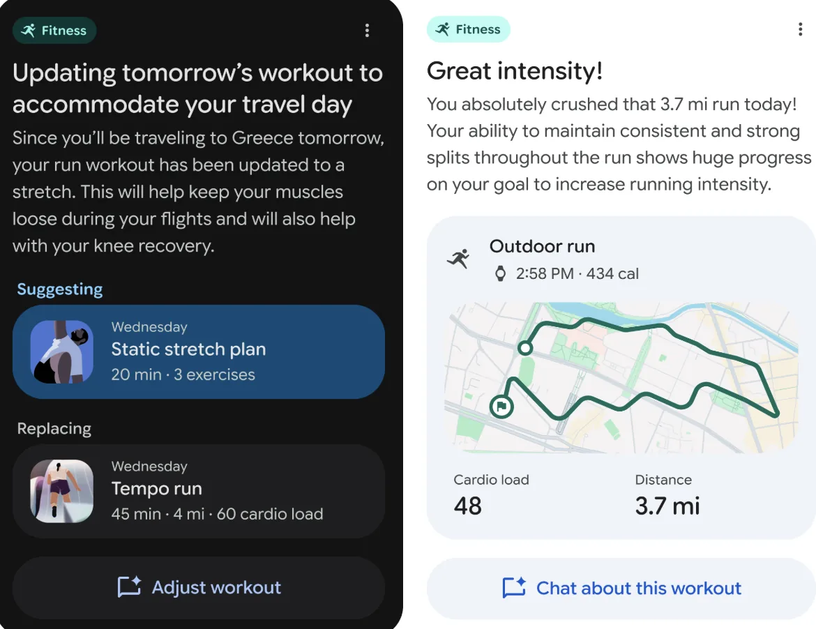Workouts draw from a large movement library, and the assistant can remember user preferences for future plans. Its conversational flexibility also allows it to explain form, compare exercises, or modify sessions on demand. Google positions this AI integration as a deeper and more responsive tool than current rivals—Samsung’s Running Coach and Apple’s Workout Buddy—though unlike those, Fitbit’s version sits behind a paywall.