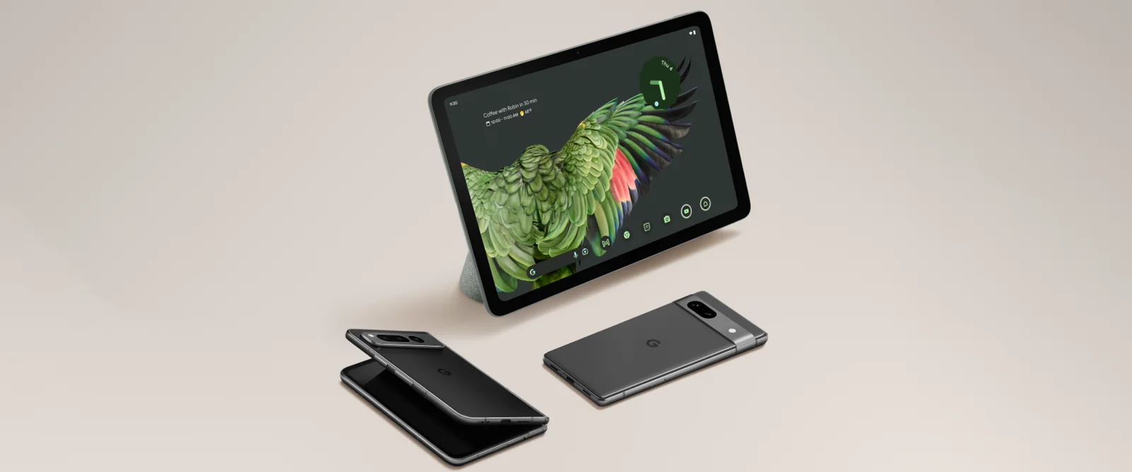 We start with the new Pixels. Google launched three new products: the Pixel Fold, the Pixel Tablet, and the budget-friendly Pixel 7A.