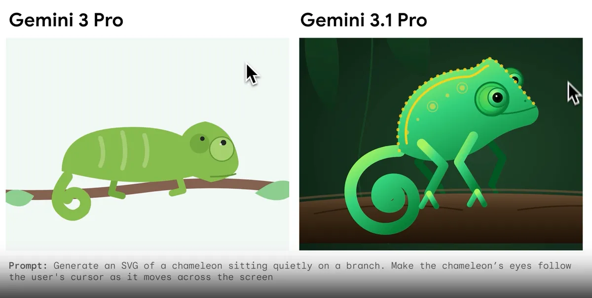 Beyond raw scores, Google has highlighted several practical applications. Gemini 3.1 Pro can generate animated SVG files from text prompts, producing scalable graphics suitable for web use without loss of quality. The company also demonstrated creative coding tasks, including generating a full website concept inspired by a literary character, as well as building interactive designs such as a 3D starling murmuration simulation with dynamic sound elements.