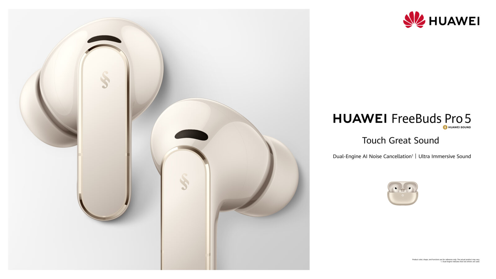 The audio lineup was updated with the FreeBuds Pro 5, which Huawei describes as the first wireless earbuds to feature dual-engine AI noise cancellation. Combined with a dual-driver acoustic system, the earbuds are intended to reduce environmental noise while preserving clarity in voice and music playback.